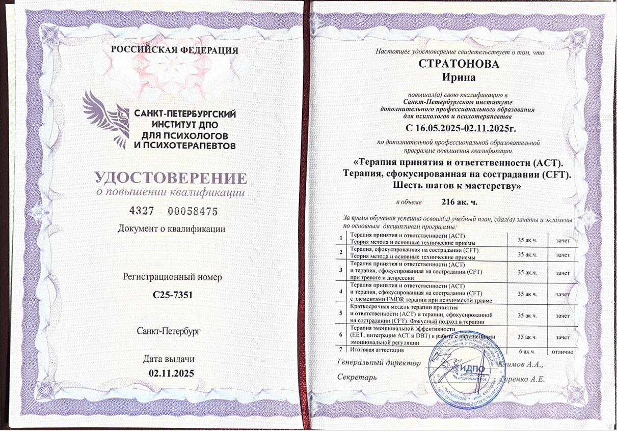 В терапии я не просто слушаю — мы вместе находим точки опоры, которые были утеряны. Моя задача как специалиста — создать условия, в которых ваш травматический опыт перестает управлять вашим настоящим.